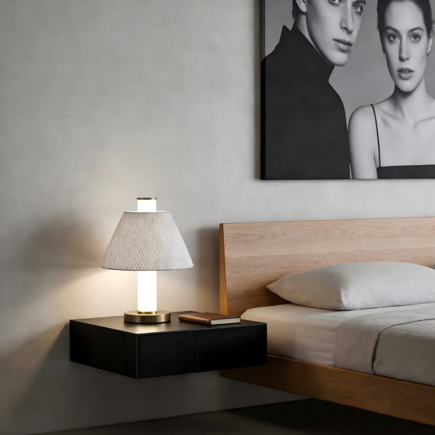 Lamba gövdesi sağlam demir sanatından yapılmıştır ve fırçalanmış bakır renkli elektrokaplama işlemiyle işlenerek hassas ve üst düzey metalik bir doku sunar. Beyaz ipek kumaşın gölgesi yumuşaktır ve ışığı eşit şekilde dağıtarak sıcak ve yumuşak bir aydınlatma atmosferi yaratır. 2000LM yüksek parlaklıkla birleştirilmiş 20W LED ışık kaynağı günlük aydınlatma ihtiyaçlarını karşılar. 4000K nötr renk sıcaklığı (müşteri gereksinimlerine göre 2700K, 3000K, 5000K vb. olarak özelleştirilebilir) ve Ra80'in üzerinde renksel geriverim indeksi, nesnelerin gerçek renk üretimini sağlayarak okuma, çalışma veya dinlenme sırasında rahat bir görsel deneyim sağlar.