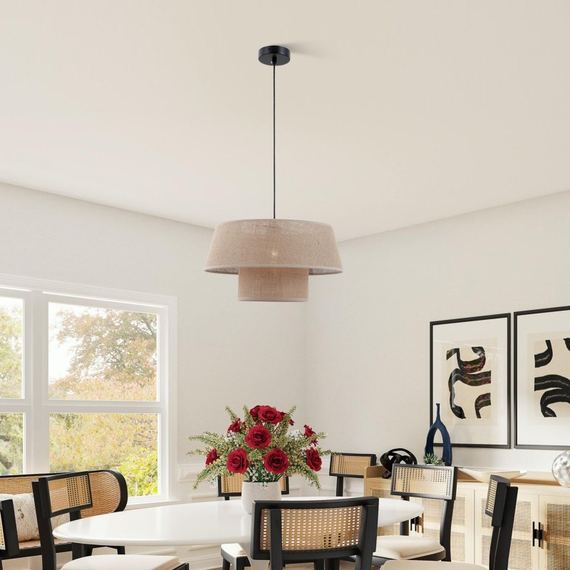 Son zamanlarda Çinli üretici Strong Lighting tarafından sunulan İki Katlı Kenevir Mutfak Sarkıt, iç dekorasyona vintage ve rahat bir hava katıyor. 1M uzunluğunda esnek siyah kablo, lambanın yüksekliğini serbestçe ayarlamanıza ve sarkıt lamba olarak kullanmanıza olanak tanır. yarı gömme aydınlatma armatürü. Yemek masasının üstüne asabilir, oturma odasının bir köşesine koyabilir, hatta yatak odanıza bile asabilirsiniz. Fonksiyonel bir ürün değil, evinizdeki dekorasyonun bir parçası. İki Katlı Kenevir Mutfak Sarkıt iki farklı boyuta sahip, diğeri 300MM çapında daha küçük.